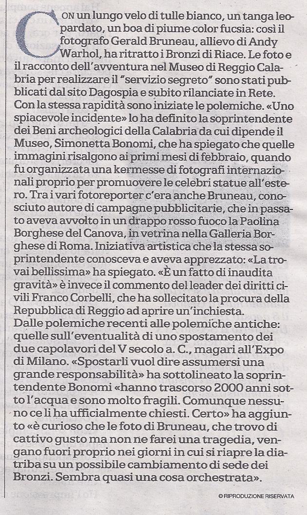 (Sotto l'articolo dal sito della Gazzetta del Sud e la notizia Ansa di oggi.